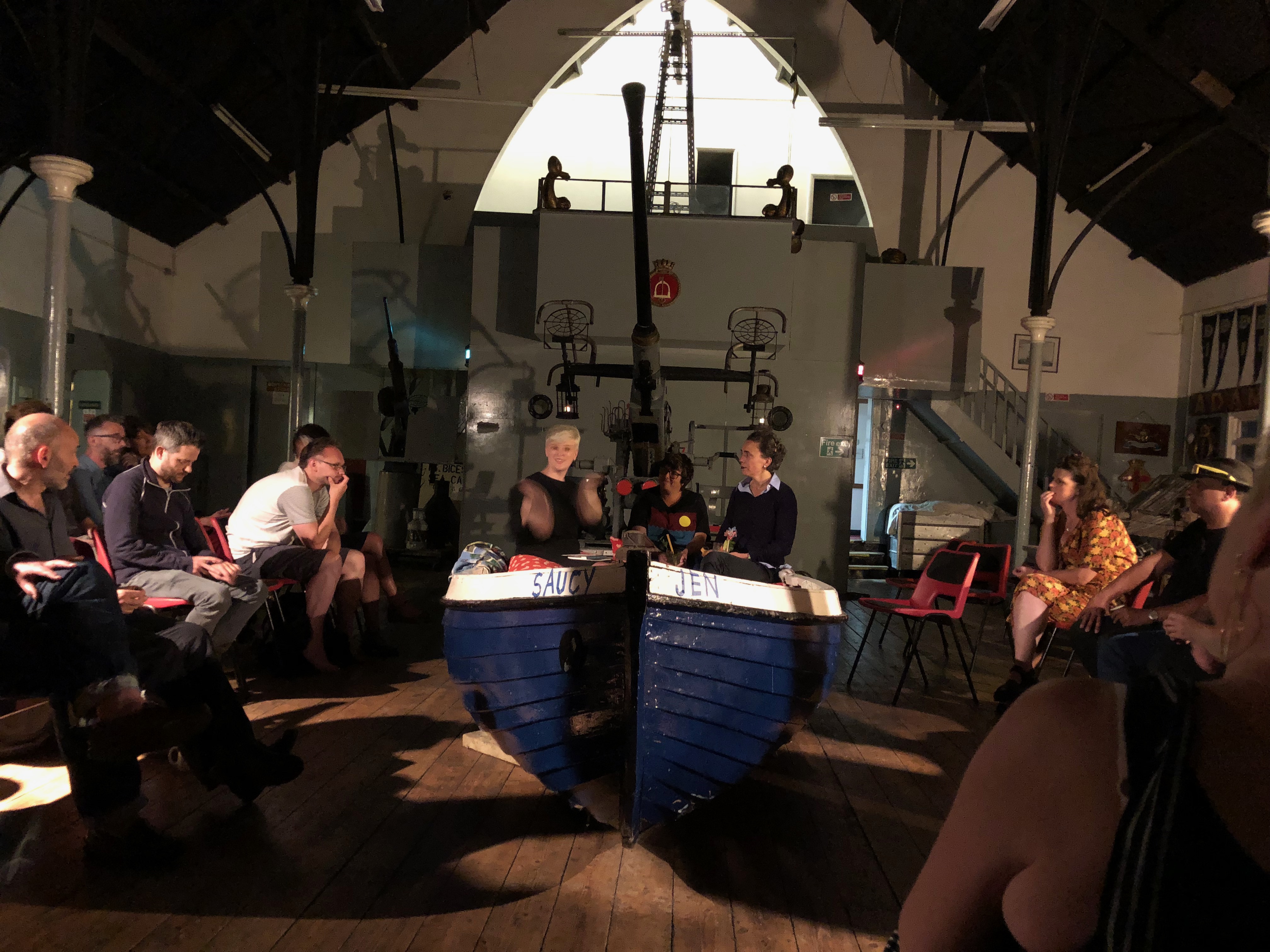 Ahoy! It’s Jen Hodgson, Eley Williams and me in a boat.