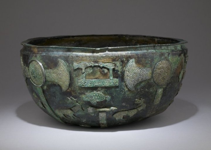 Here’s a Celtic bowl from the 7th century, found at Lullingstone, Kent. There is a fish lower on the sides, but it’s hard to see.