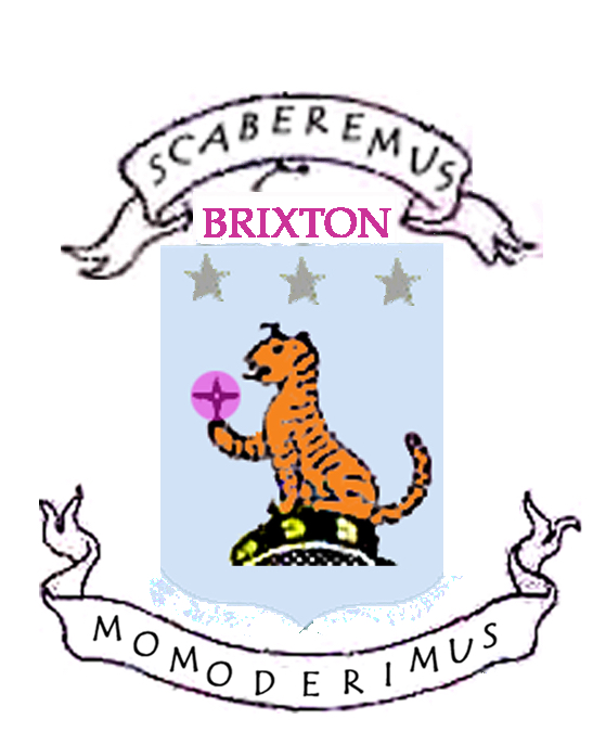 Here’s a tiger, from Brixton, South London, spinning… is it a mirror? Is it an Aleph (from the story of J.L. Borges), ‘one of the points in space that contain all other points’, which appears as ‘a small iridescent sphere of almost unbearable brilliance’? No, it’s a football. And the motto, in Latin, means, ‘We scratch, we will have bitten.’